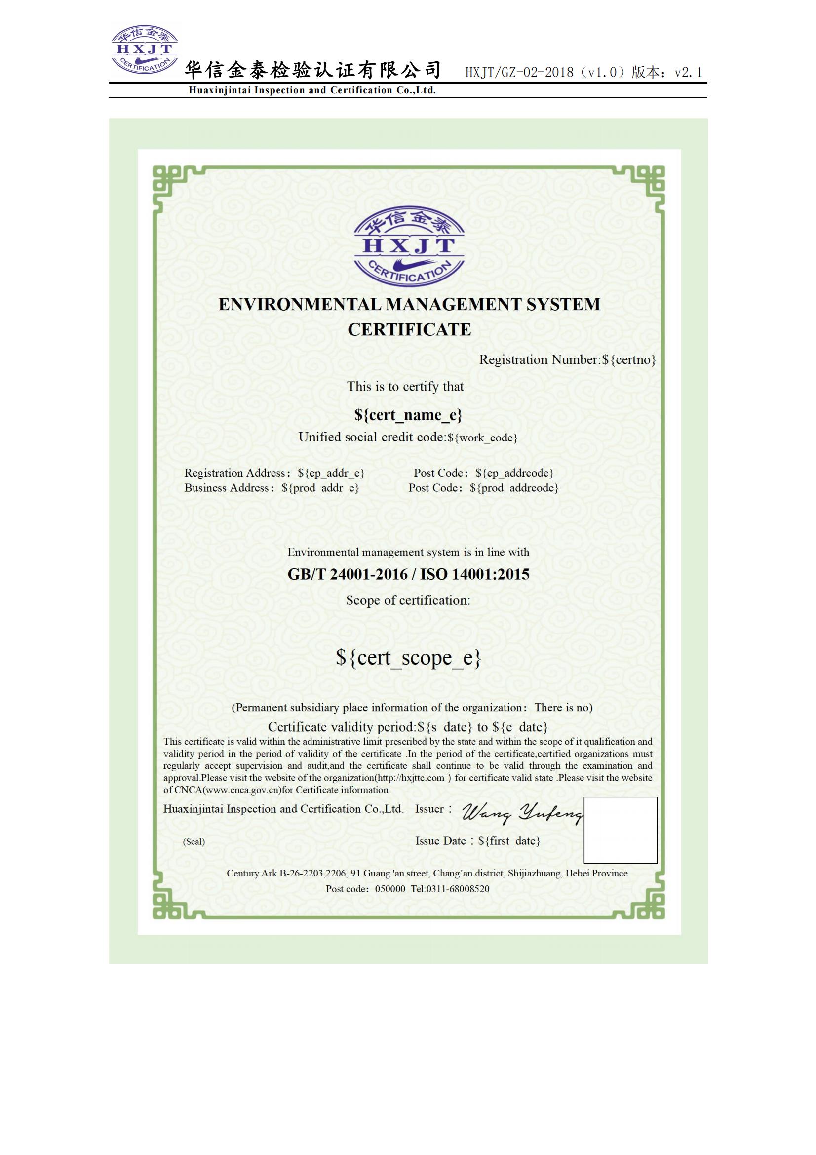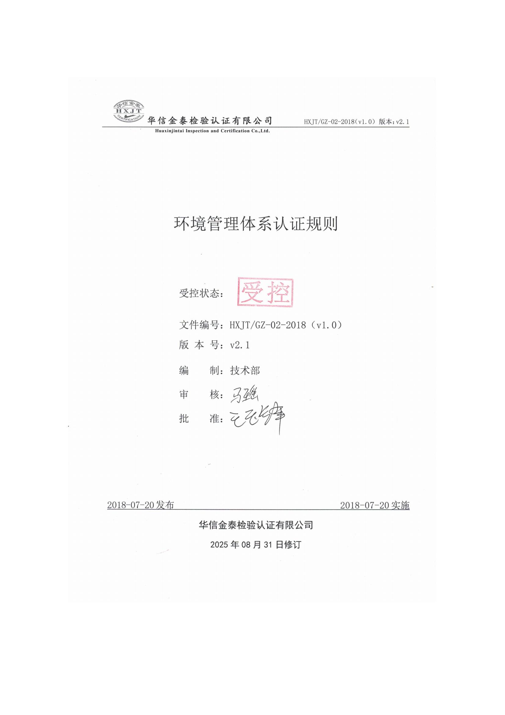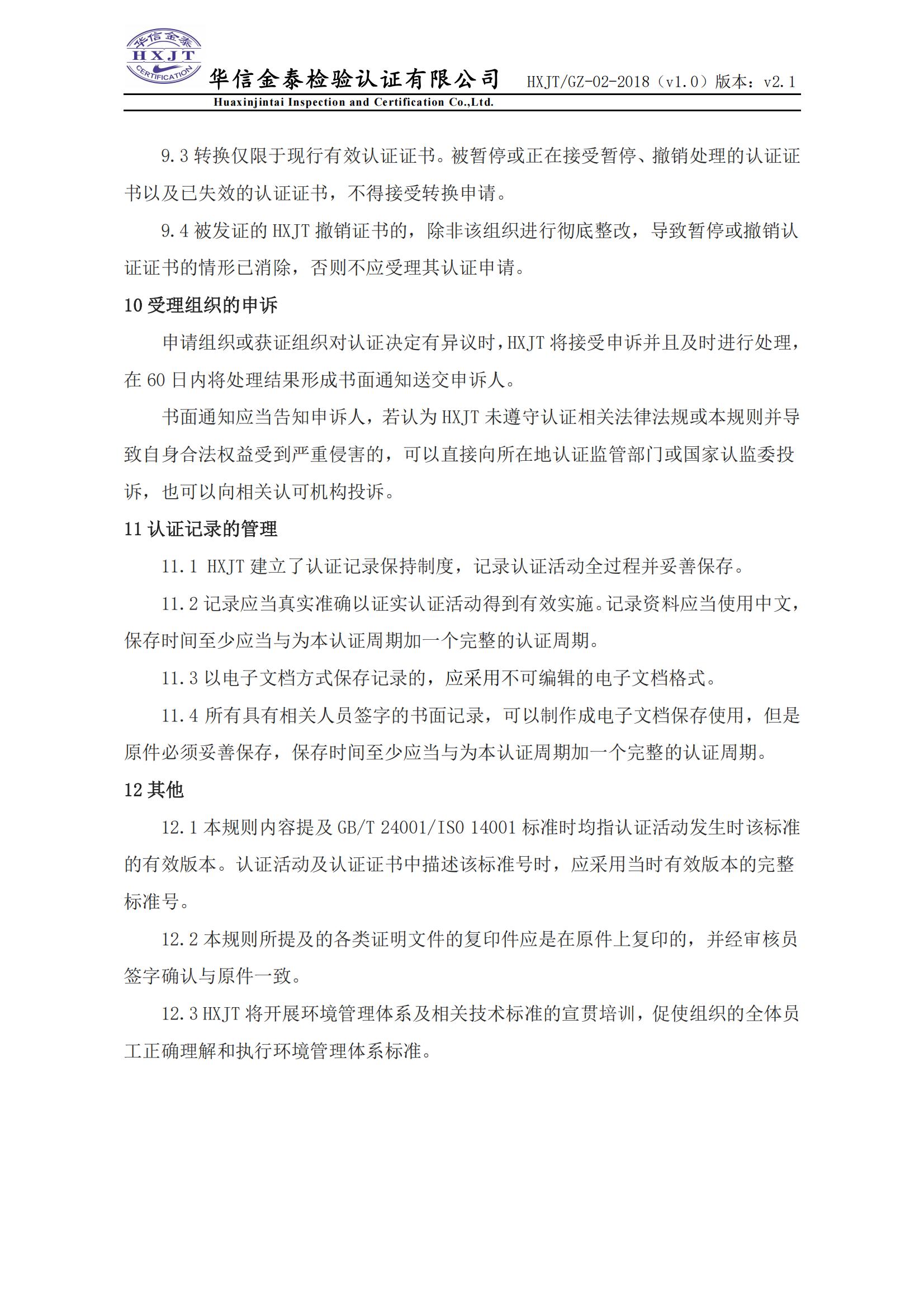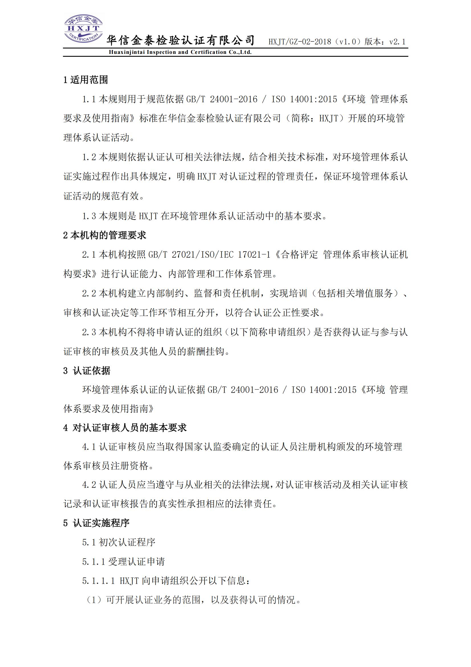 环境管理体系认证规则